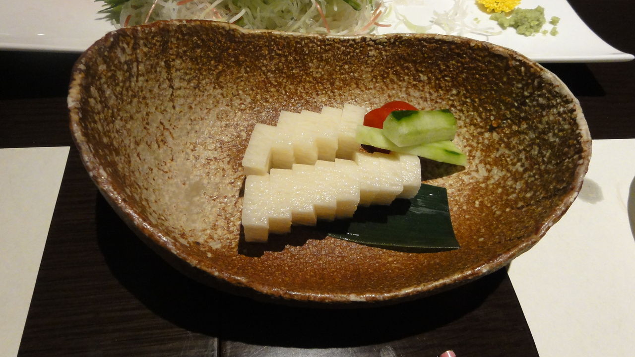 お刺身用に九州の甘いしょうゆ、塩など三種出ました。