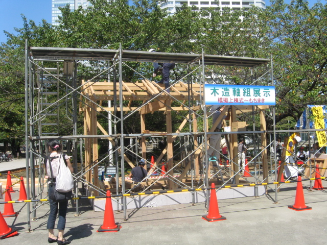 錦糸公園では、東京土建の住宅まつりの準備をしてました。