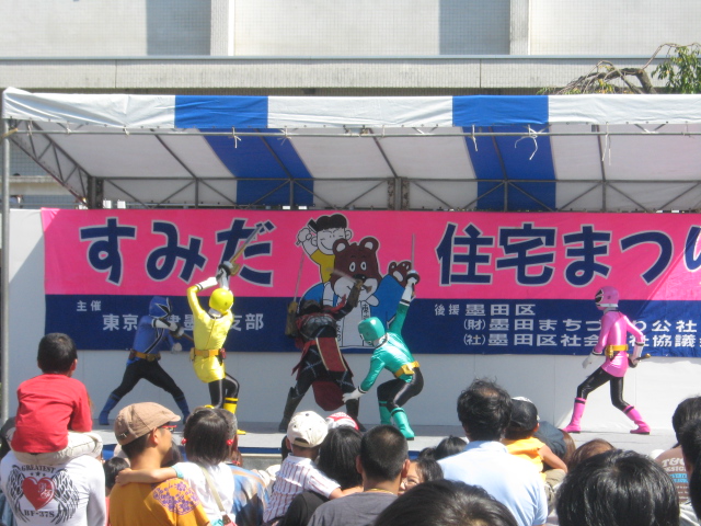 シンケンジャー「侍戦隊シンケンジャー」ショーもあるようで、舞台でリハーサルなのか、刀を振っている人がいました。