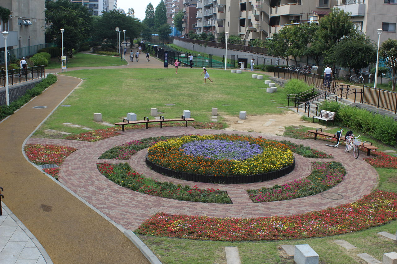 大横川親水公園で子供たちが遊んでいます。こいつら帰りの着替えはどうするのか。