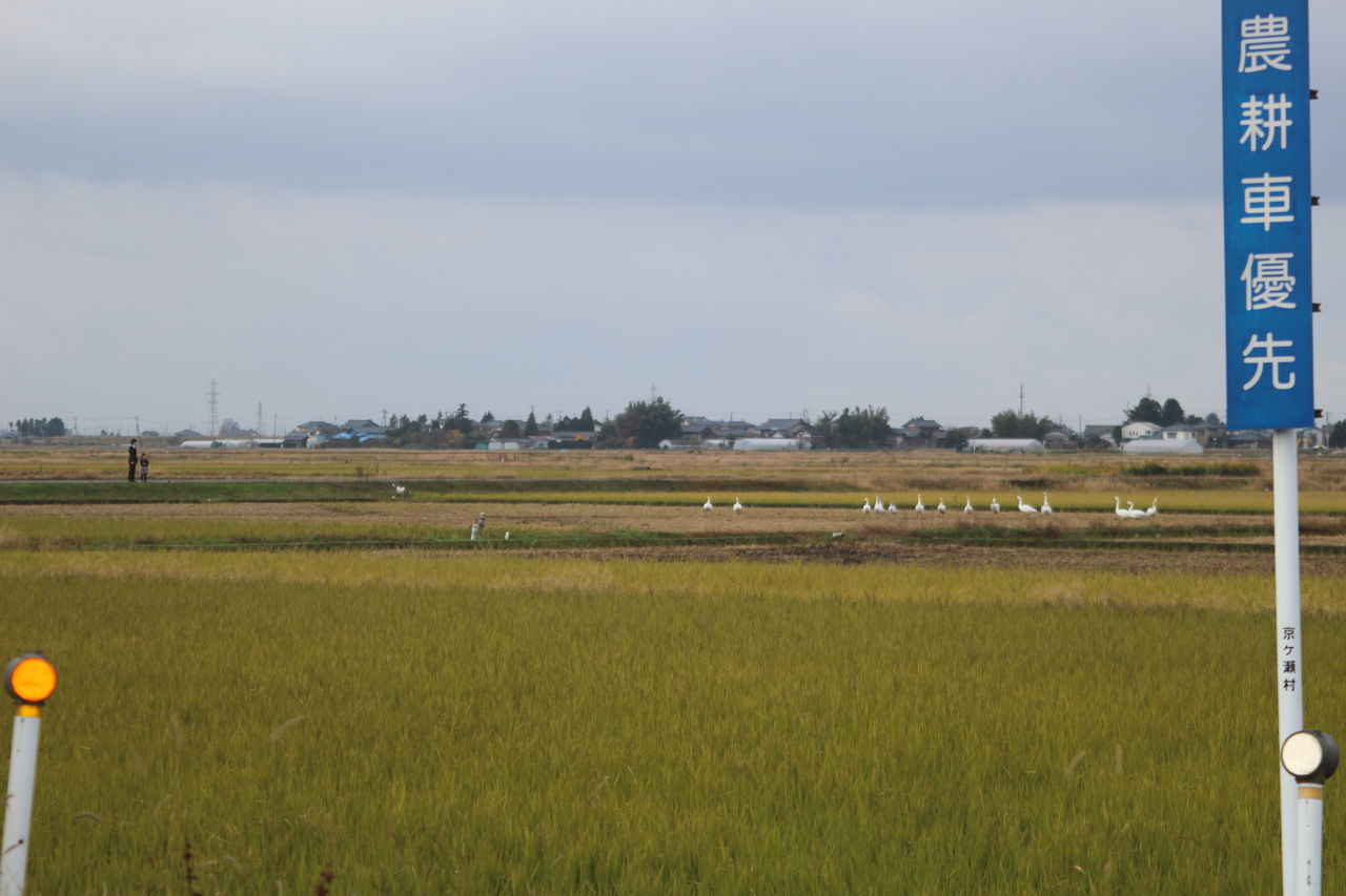 田んぼに白いごみ袋の様に見えるのは全て白鳥です。