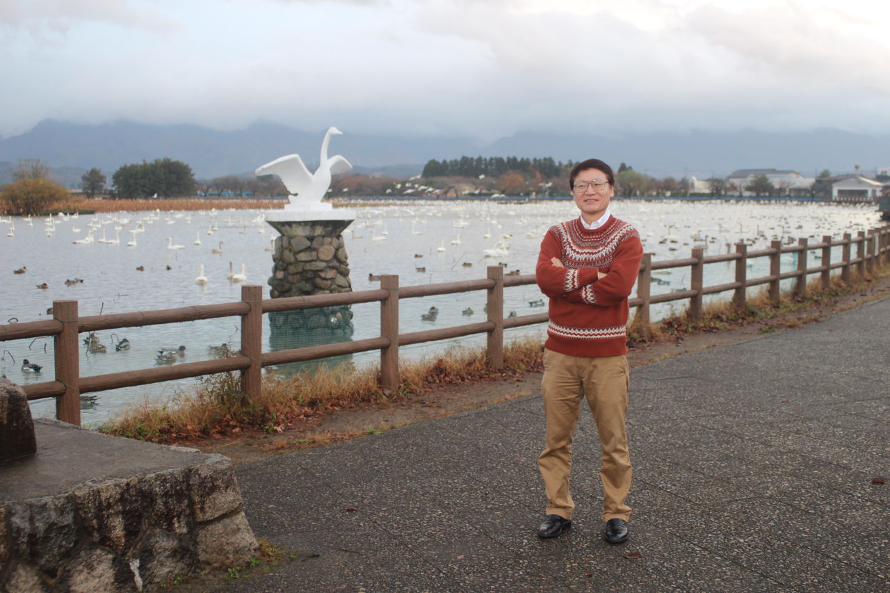 日曜が葬儀となり、その日の朝、会場前の瓢湖です。