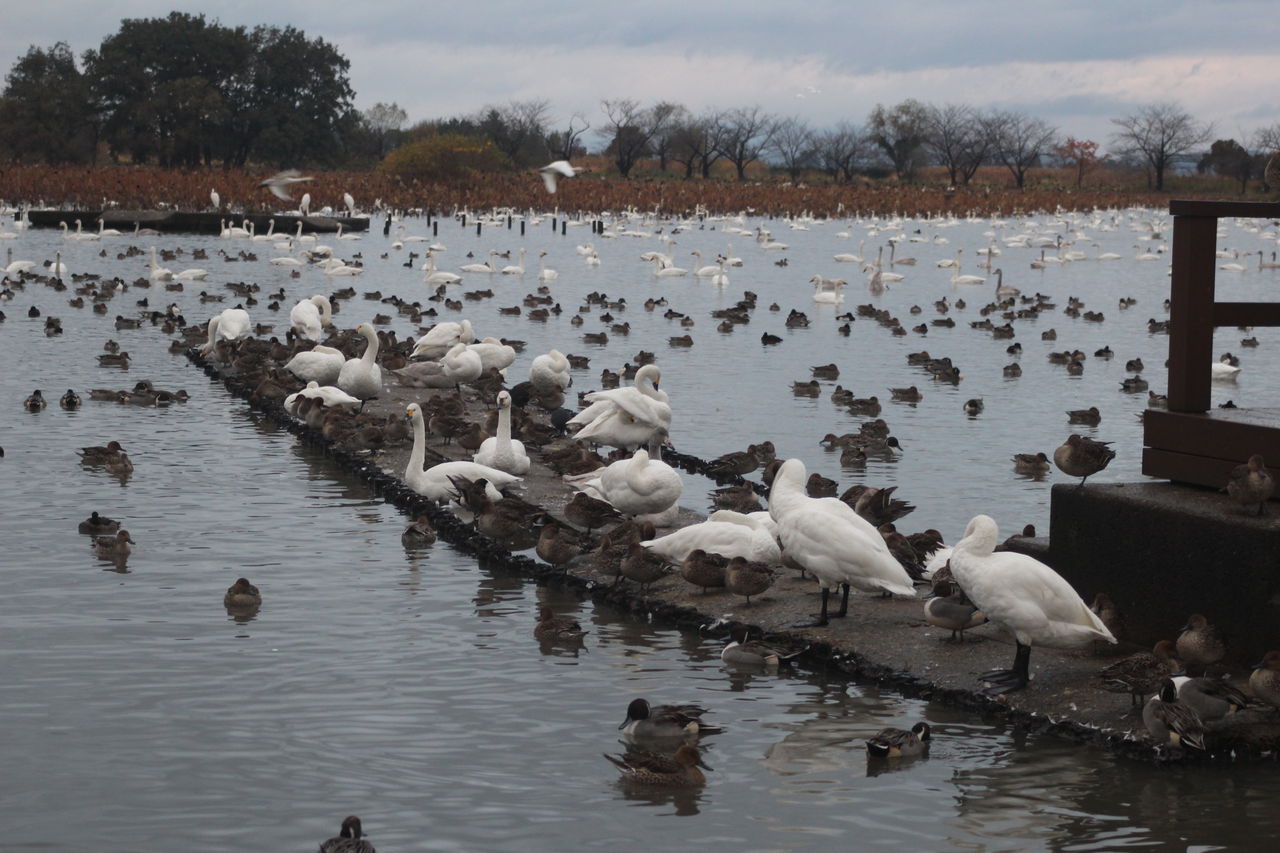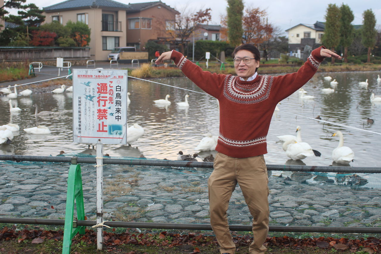 白鳥は4707羽来ているそうで、瓢湖には入りきれず、夜明けに周りの田んぼへ餌を取りに飛んでいきます。
