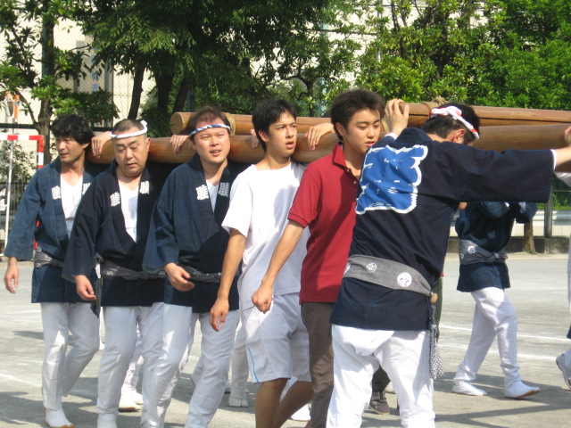 神輿の担ぎ方練習会も、第二回になり、神輿を上に投げ上げる、新技の練習もやりました。