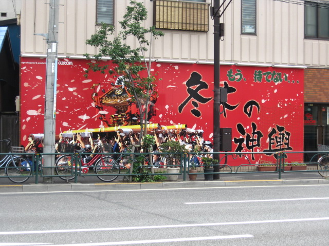 冬木大看板もう待てない、冬木の神輿。