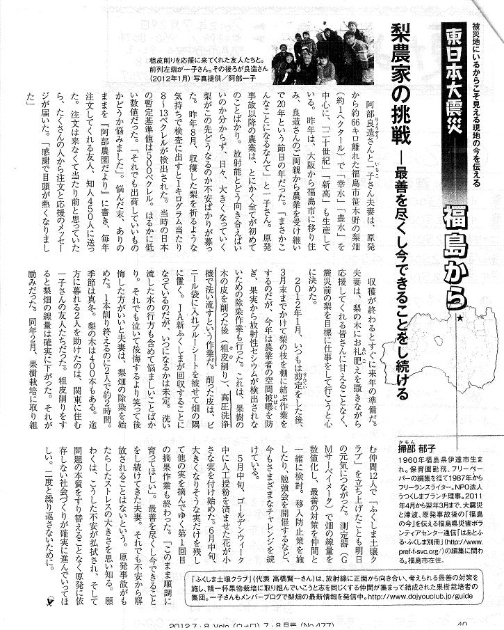震災にもユニセフは来てました。昨年梨の共同購入に皆さんからご協力いただいた、福島の阿部農園からもお便りが来ています。