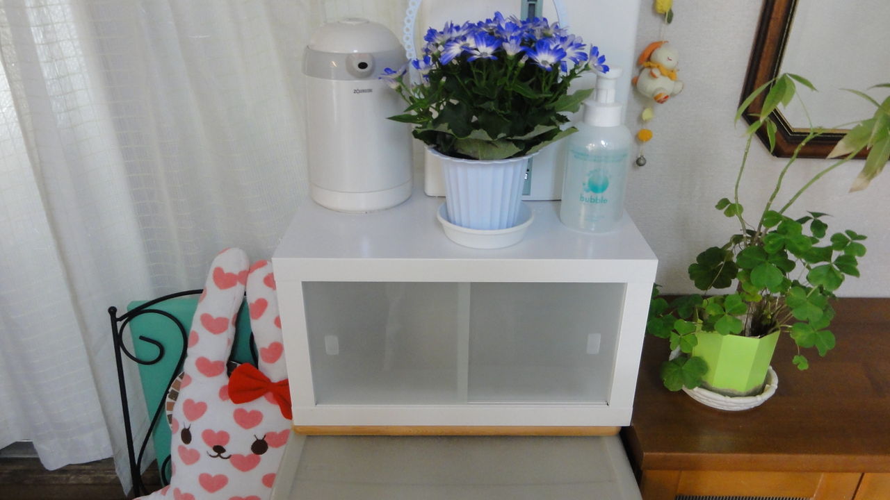 新しい食器棚を置きました。マスコットのスタンドもバージョンアップ。
